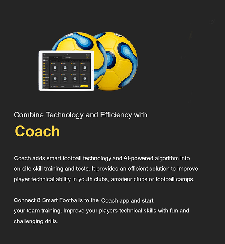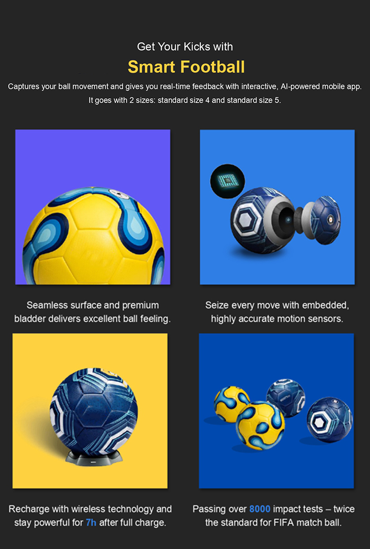 lPersonal virtual football trainer: The Smart Soccer Ball l provides real-time feedback in live and on-demand training programs for you to do at home.Paired with the mobile app, the Smart Soccer Ball provides real-time feedback in live and on-demand training programs for you to do at home, provides a variety of challenging drills and sessions taught by expert coaches.